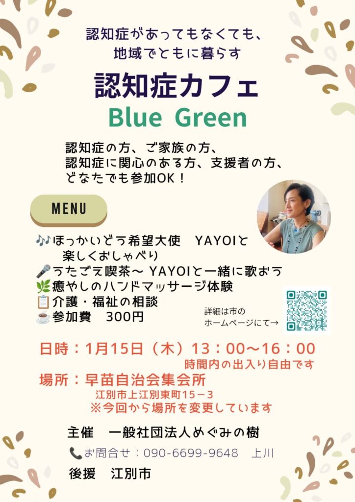 2026/1/15 江別市内で『認知症カフェ〜Blue Green〜vol.3』を開催します!